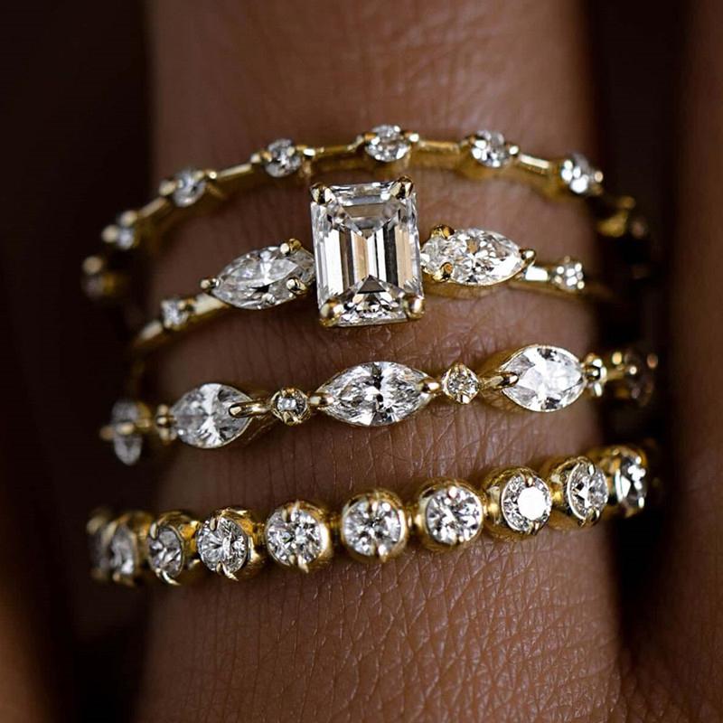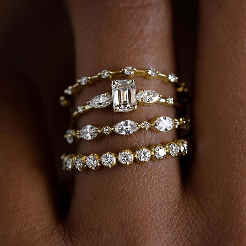 4 шт. Кольца для женщин Золотой цвет Роскошный Свадебный Набор Ювелирные изделия Блестящий Геометрический Кубический Циркон Новые Модные Женские Аксессуары