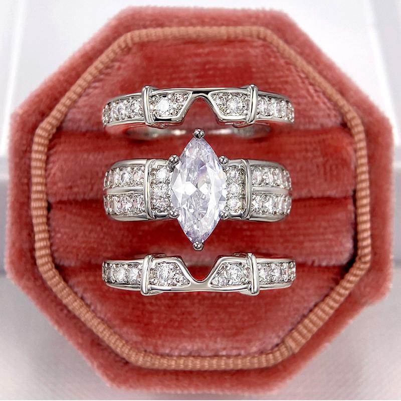Кольца-сеты с кубическим цирконием огранки «маркиза» нового дизайна для женщин, высококачественные, серебристого цвета, 3 шт., парные кольца, трендовые украшения 2023 года