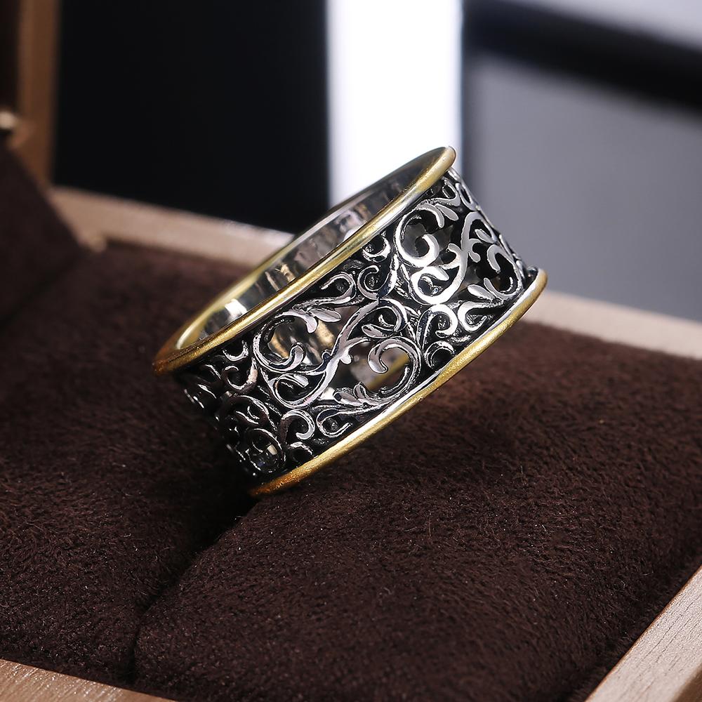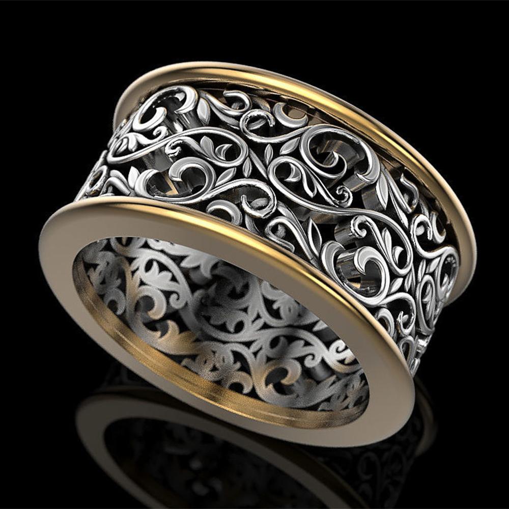 Винтажные кольца с узором Женские Двухцветные в стиле панк Женские Аксессуары для повседневной носки Хип-хоп кольцо Ретро Вечеринка Универсальные украшения