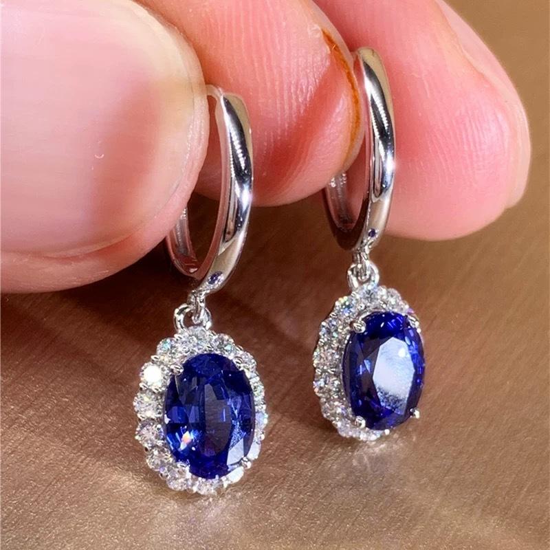 Овальные серьги-подвески из кубического циркония синего/красного цвета для женщин, роскошные свадебные аксессуары серебристого цвета, элегантные женские трендовые украшения — купить товар онлайн с бесплатной доставкой по всему миру!
