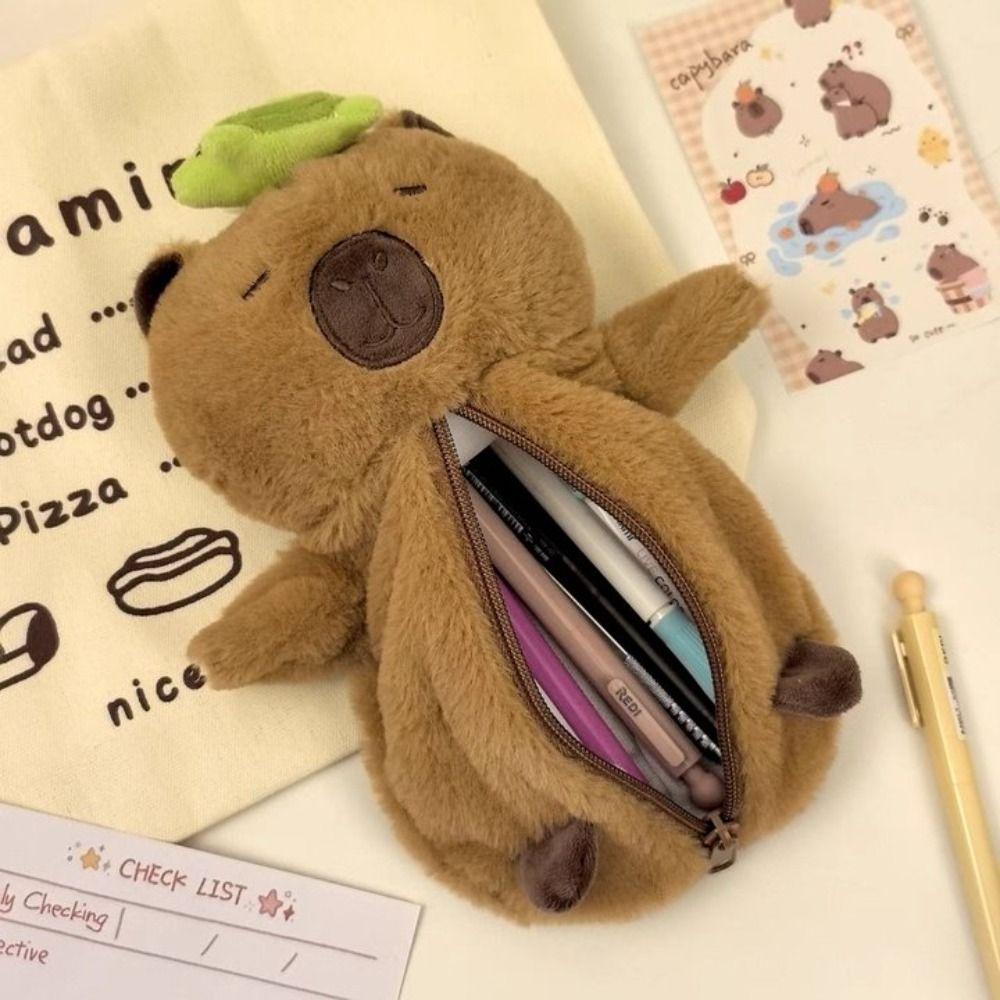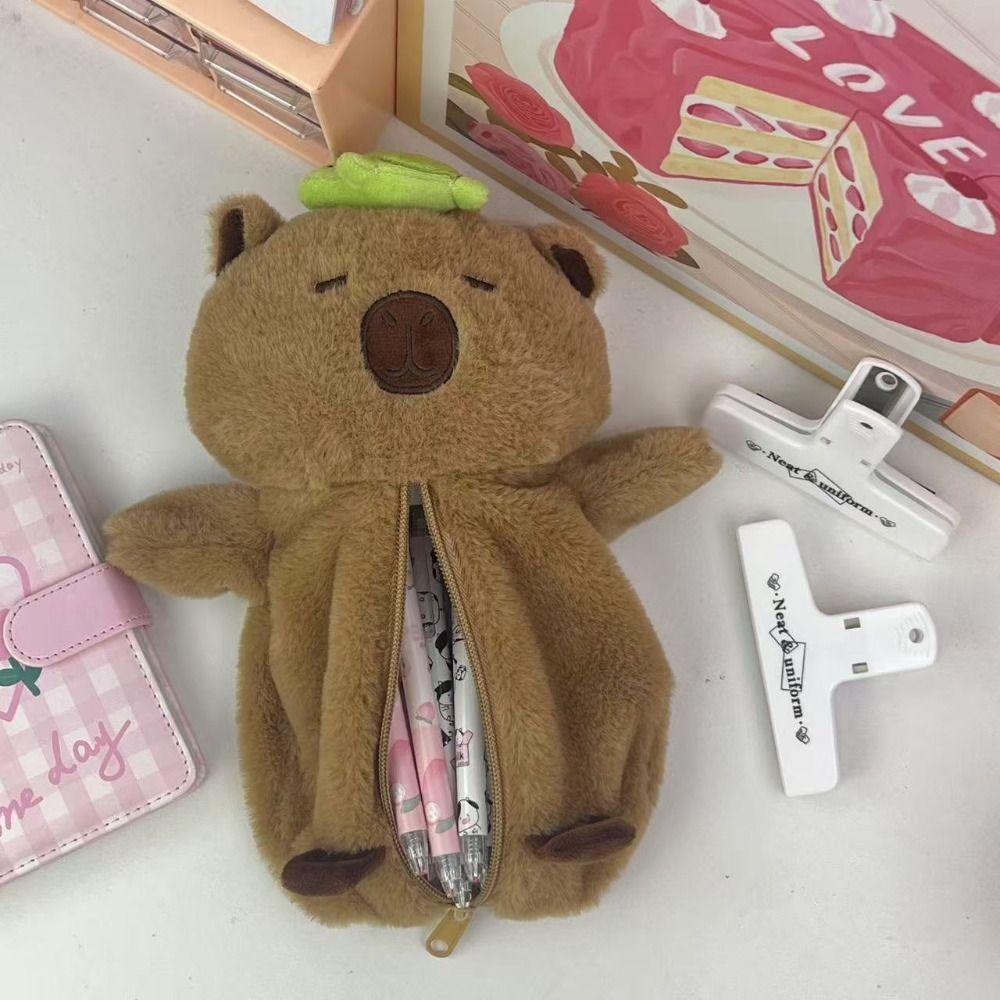 Animal Doll Cartoon Capybara Plush Doll Large Capacity Capibara Plush Pencil Pouch Children