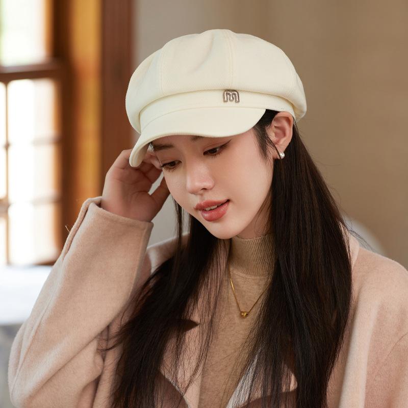 Корейская версия новой осенне-зимней шляпы для женщин, восьмиугольная шляпа с металлическими буквами M, в литературном ретро-стиле, и маленькая шляпа газетчика