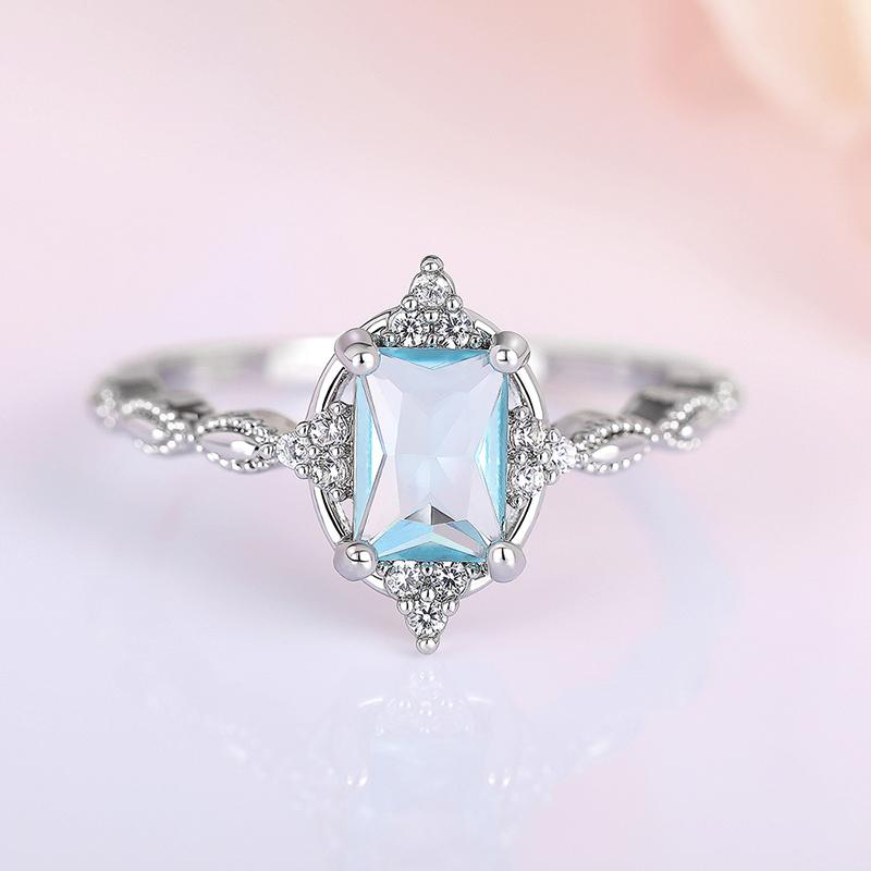 Голубые кольца с кубическим цирконием для женщин Новые модные свадебные аксессуары Роскошные женские кольца серебристого цвета Великолепные украшения
