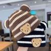 Детская шапка осень-зима полосатая шапка с ушками мультяшная детская теплая флисовая детская шапка-пуловер вязаная шерстяная шапка
