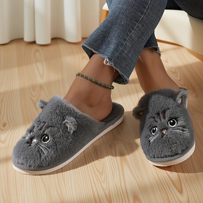 Милые кошачьи тапочки Женские плюшевые тапочки Мультяшный узор с котенком, Теплые домашние тапочки для осени и зимы, Унисекс мягкие тапочки, Парные тапочки