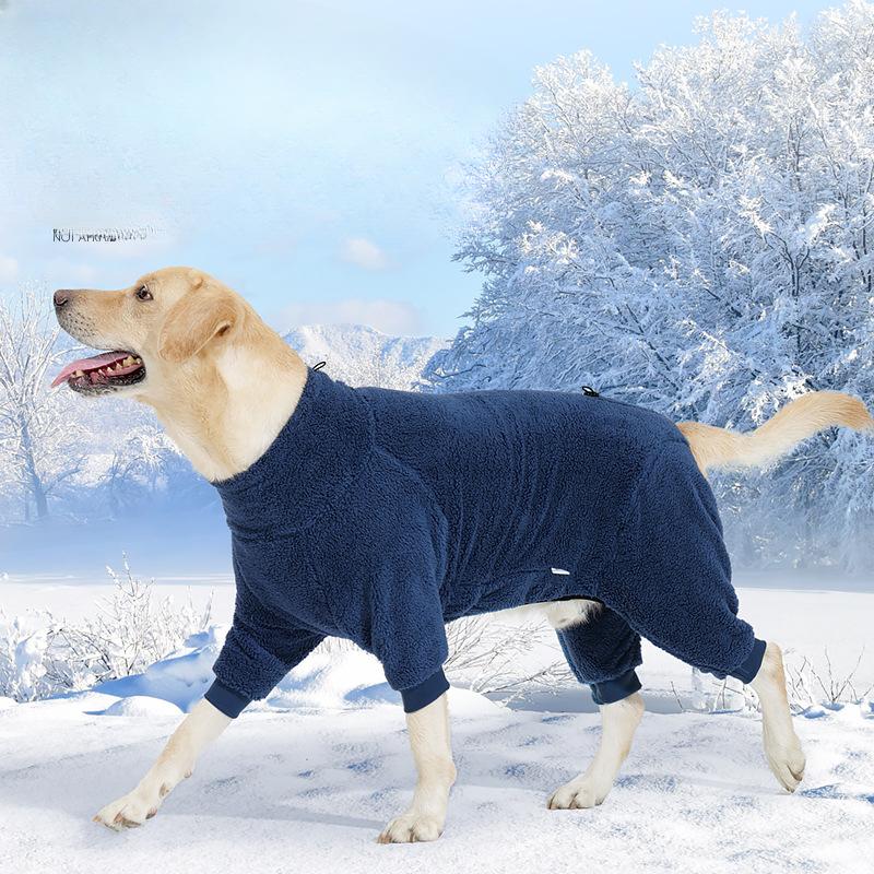 Собачье четырехлапое пальто для защиты от холода и тепла зимой, цельное пальто из длинного плюша для домашней носки, высокий воротник