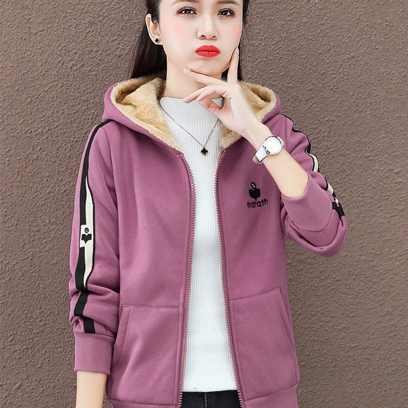 Повседневная свободная короткая флисовая куртка женская осень длинный рукав худи уличная мода спортивные толстовки
