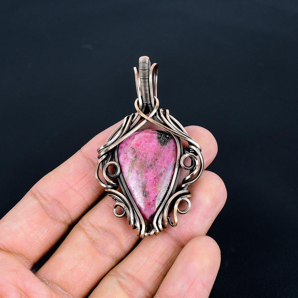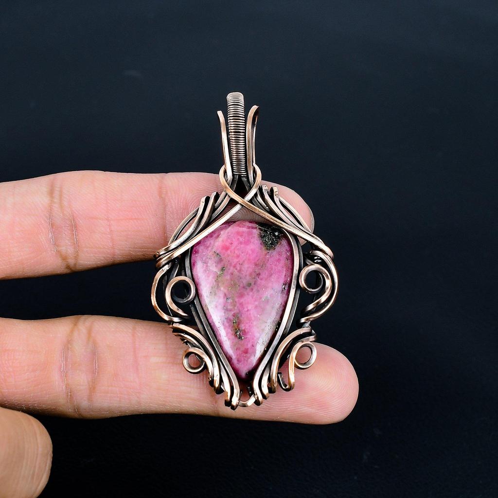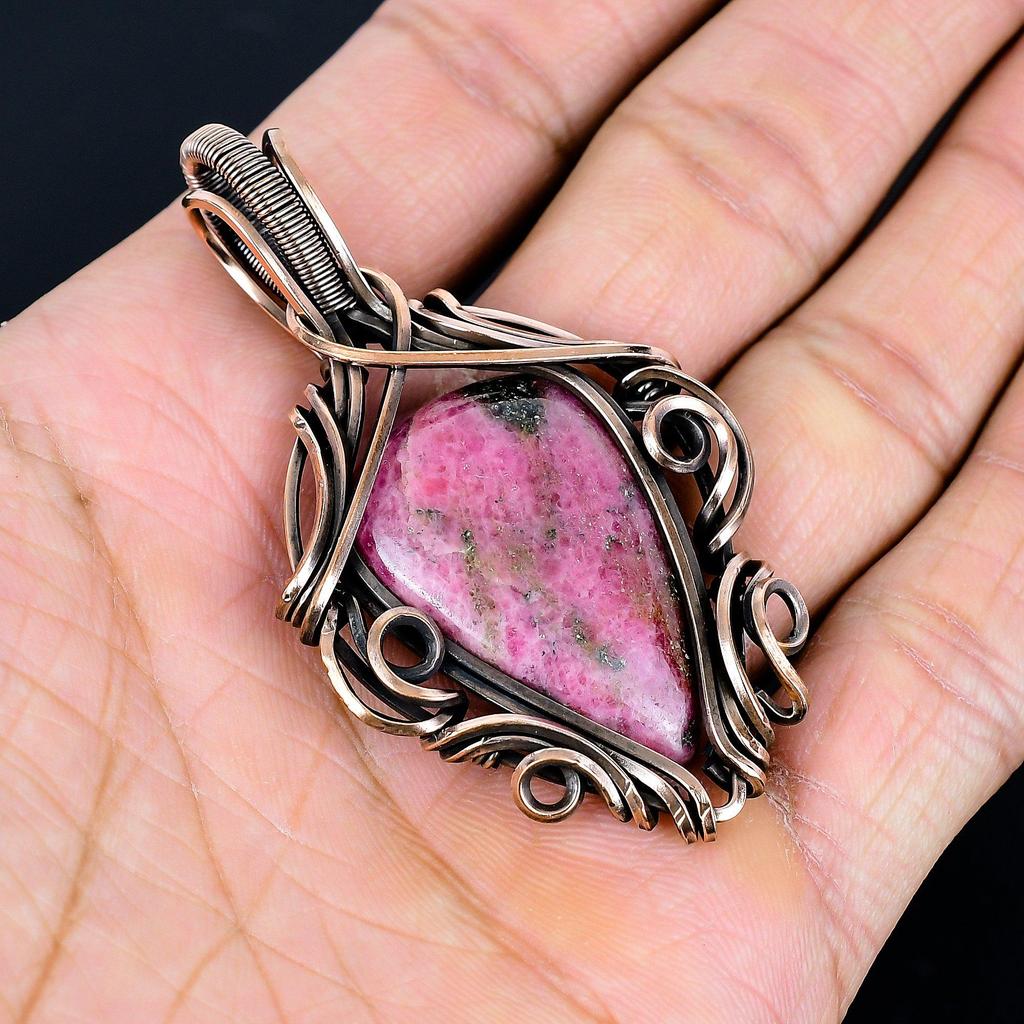 Украшения из родонита, кулон, обернутый медной проволокой 999 пробы, украшения из драгоценных камней ручной работы, подарки для жены, совершенно новый кулон