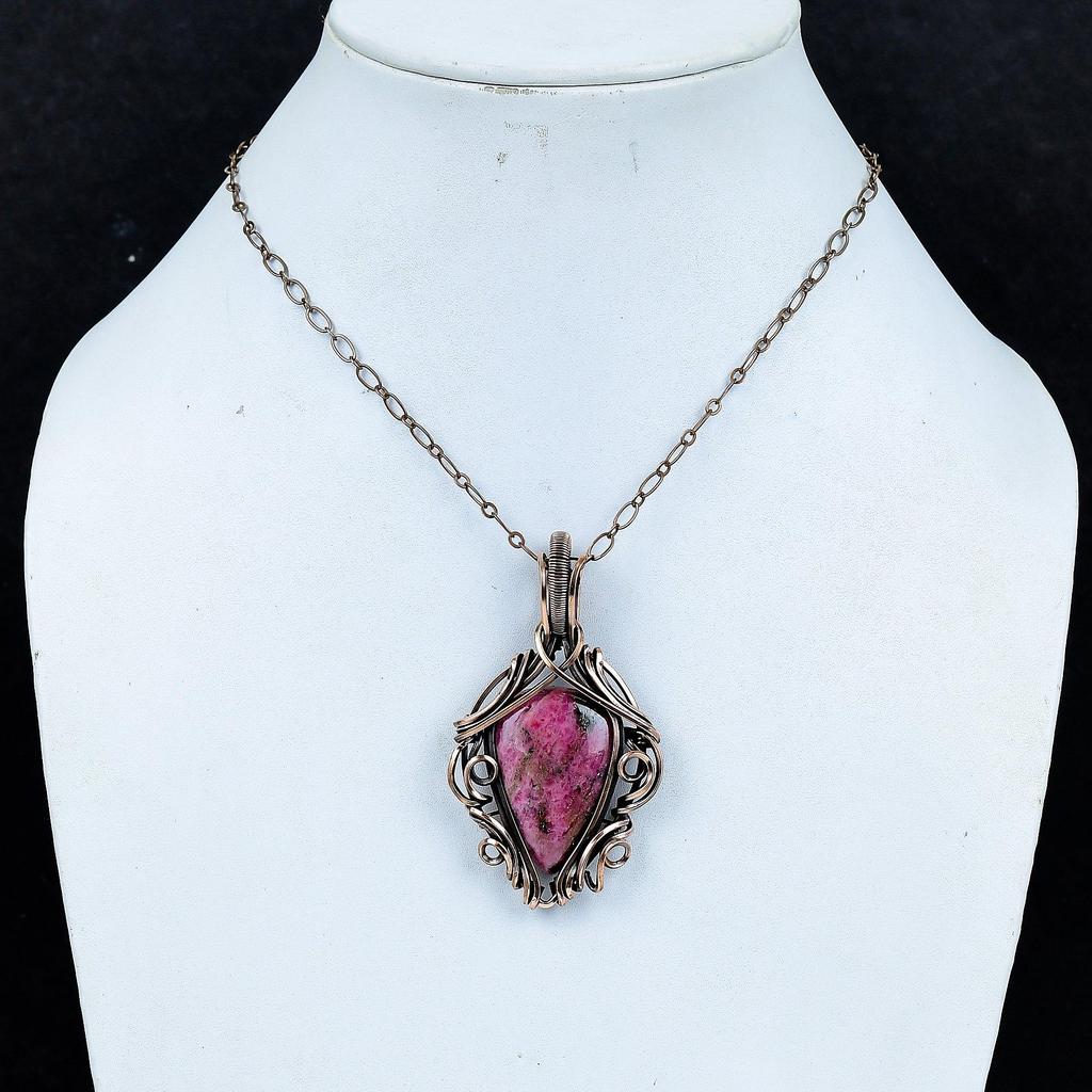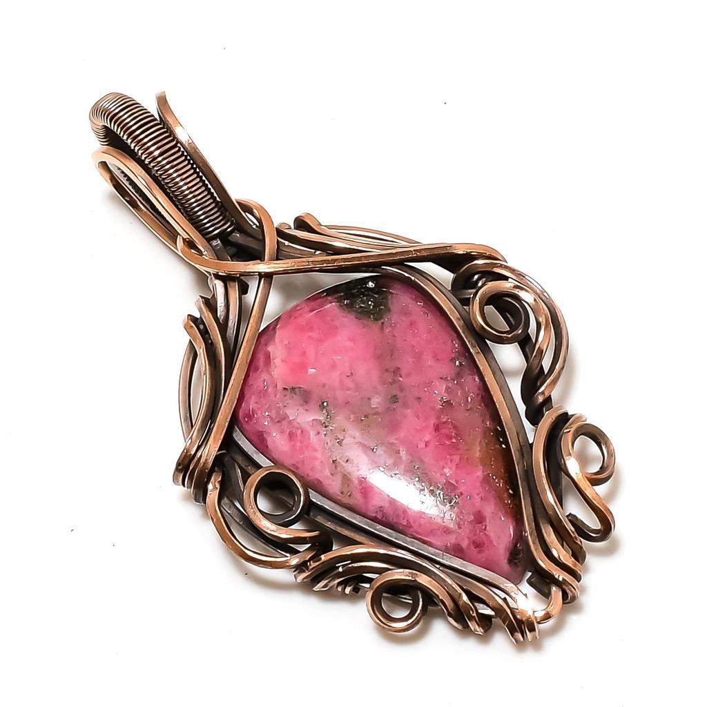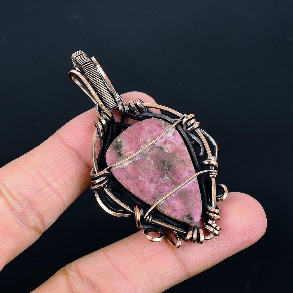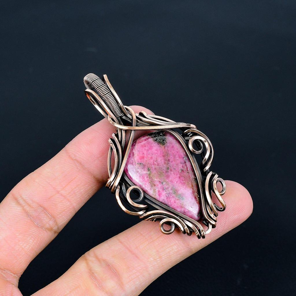 Украшения из родонита, кулон, обернутый медной проволокой 999 пробы, украшения из драгоценных камней ручной работы, подарки для жены, совершенно новый кулон