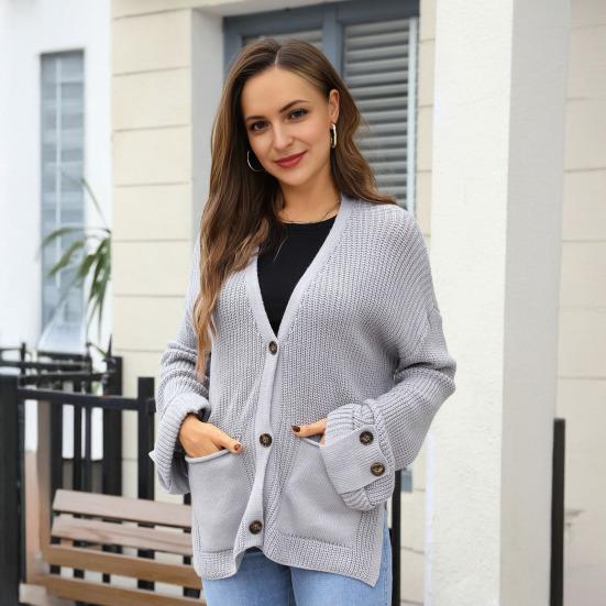 Роскошный Акриловый Комфорт: Этот женский вязаный кардиган, изготовленный из акрила премиум-класса, дарит ощущение роскоши, он мягкий и удобный, идеально подходит для создания непринужденных образов весной и осенью.