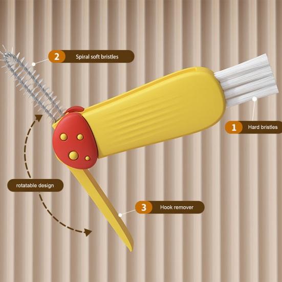 Универсальная конструкция 3-в-1: Наша инновационная щетка сочетает в себе щетки для щелей, углов и сопел чашек в одном компактном инструменте. Достаньте каждый уголок и щель чашек и крышек для тщательной очистки, обеспечивая безупречную гигиеничность.