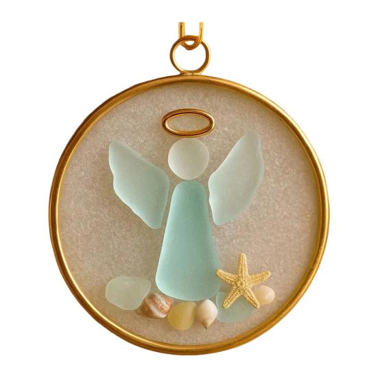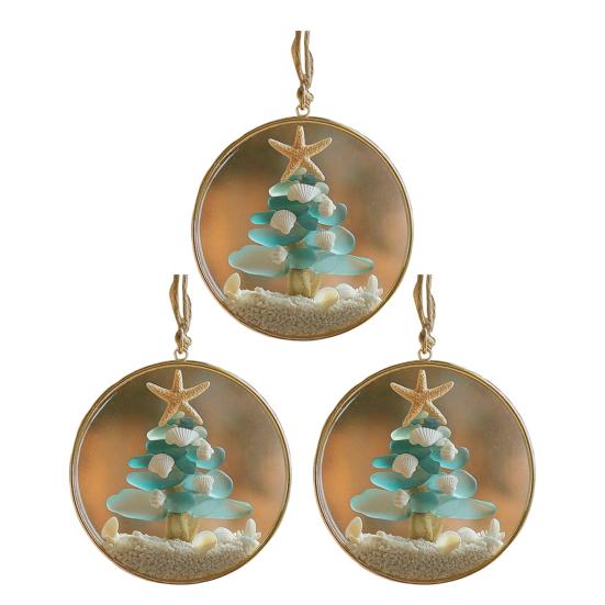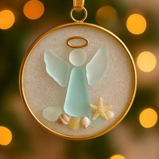 Золотая рамка и натуральная веревочная подвеска позволяют без труда демонстрировать его, а детали из морского стекла привносят в ваш праздничный декор безмятежную океаническую атмосферу.. Отпразднуйте дух Рождества с нашими украшениями из морского стекла, гармонично сочетающими прибрежную красоту с вечными праздничными сюжетами.. Идеальные для любителей пляжа и тех, кто ценит дух сезона, эти елочные украшения из морского стекла достаточно универсальны, чтобы украшать различные события, помимо Рождества – от домашнего декора до вечеринок по случаю дня рождения и свадебных юбилеев..