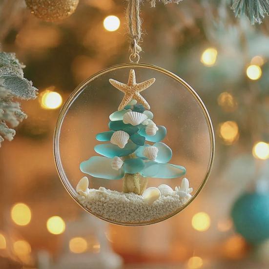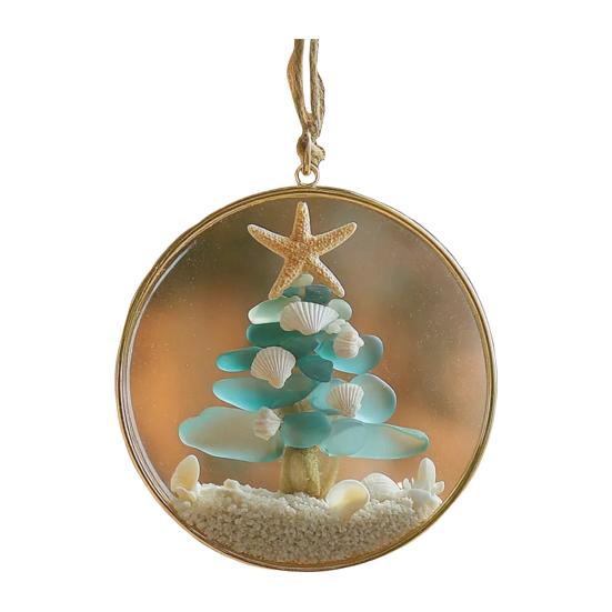 Поднимите свой рождественский декор на новый уровень с нашим украшением из морского стекла, изготовленным из высококачественной смолы, передающим сущность морского побережья в уникальном и элегантном дизайне.