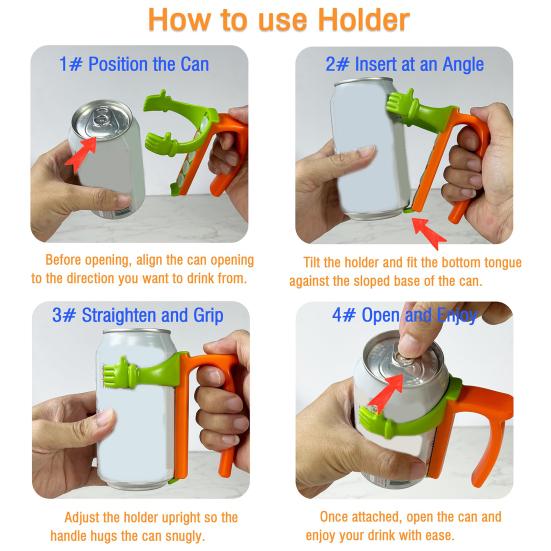 Индивидуальная подгонка: Разработанный специально для стандартных банок объемом 12 унций диаметром 2,6 дюйма, держатель для банок с ручкой и крышкой обеспечивает плотное прилегание для повышенной устойчивости.. Больше не нужно беспокоиться о том, что банки трясутся или скользят – наслаждайтесь напитками без хлопот.