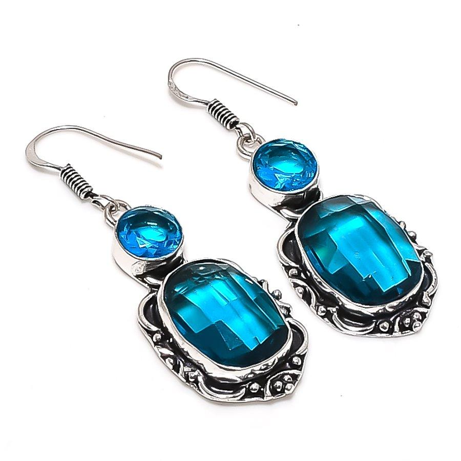 Натуральный швейцарский голубой топаз драгоценный камень 925 стерлинговое серебро ювелирное изделие серьга 2,17" P1c29