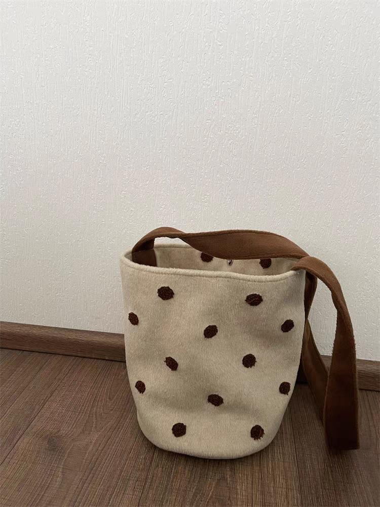 Сумка-ведро в горошек для чая с пузырьками, сумка в горошек, новый нишевый дизайн, на плечо, мессенджер, сумка для通勤, женская