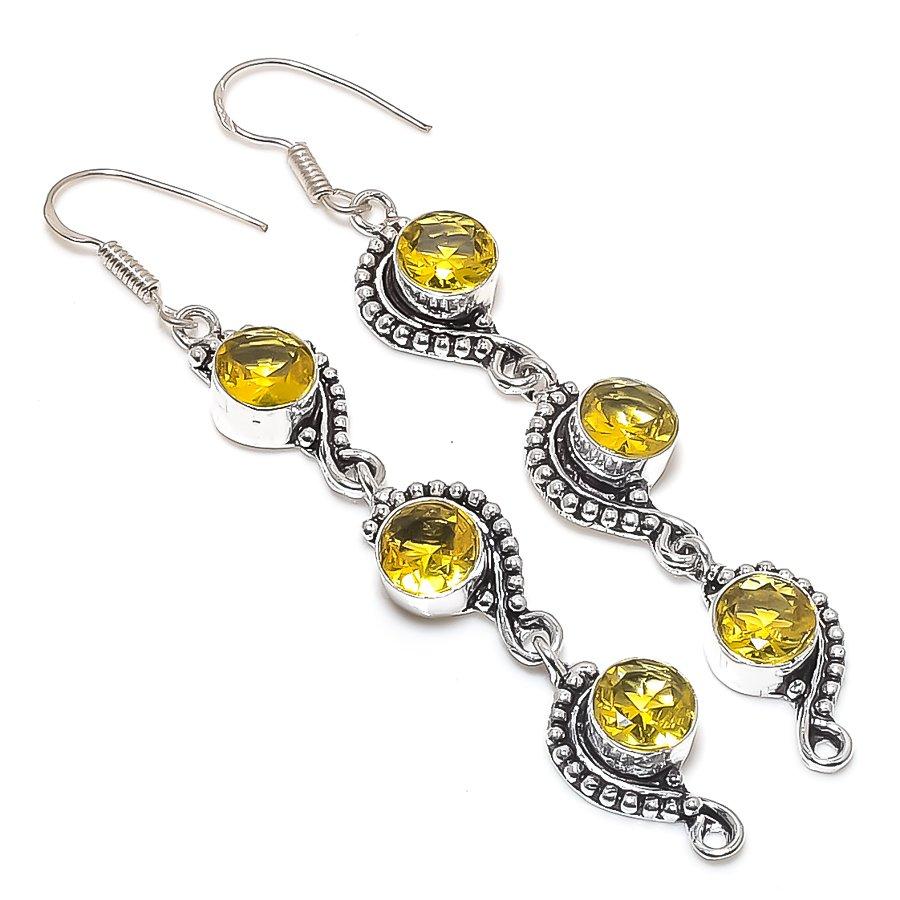 Натуральный Цитрин Драгоценный Камень Ручной Работы 925 Стерлинговое Серебро Ювелирное Изделие Серьга 3.27" V9i19 — купить товар онлайн с бесплатной доставкой до всему миру!