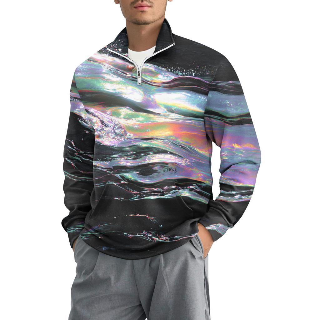 Мужской свободный повседневный свитшот на молнии 1/4, модный топ с длинным рукавом и принтом, с карманами