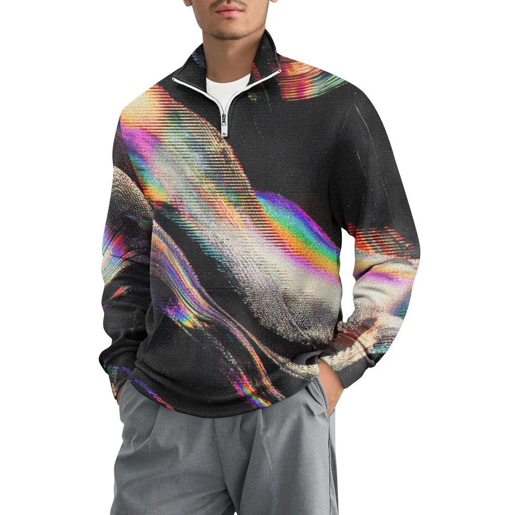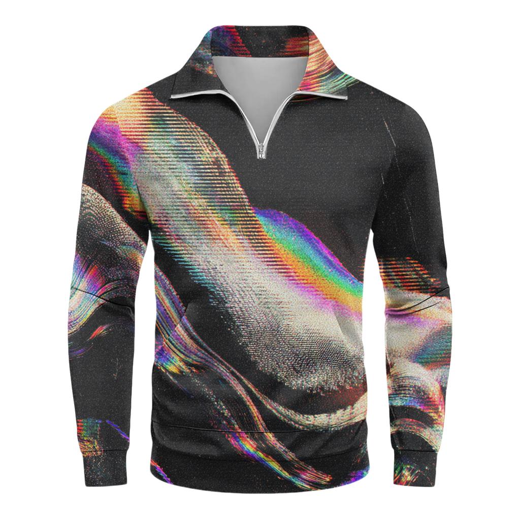 Мужской свободный повседневный свитшот на молнии 1/4, модный топ с длинным рукавом и принтом, с карманами