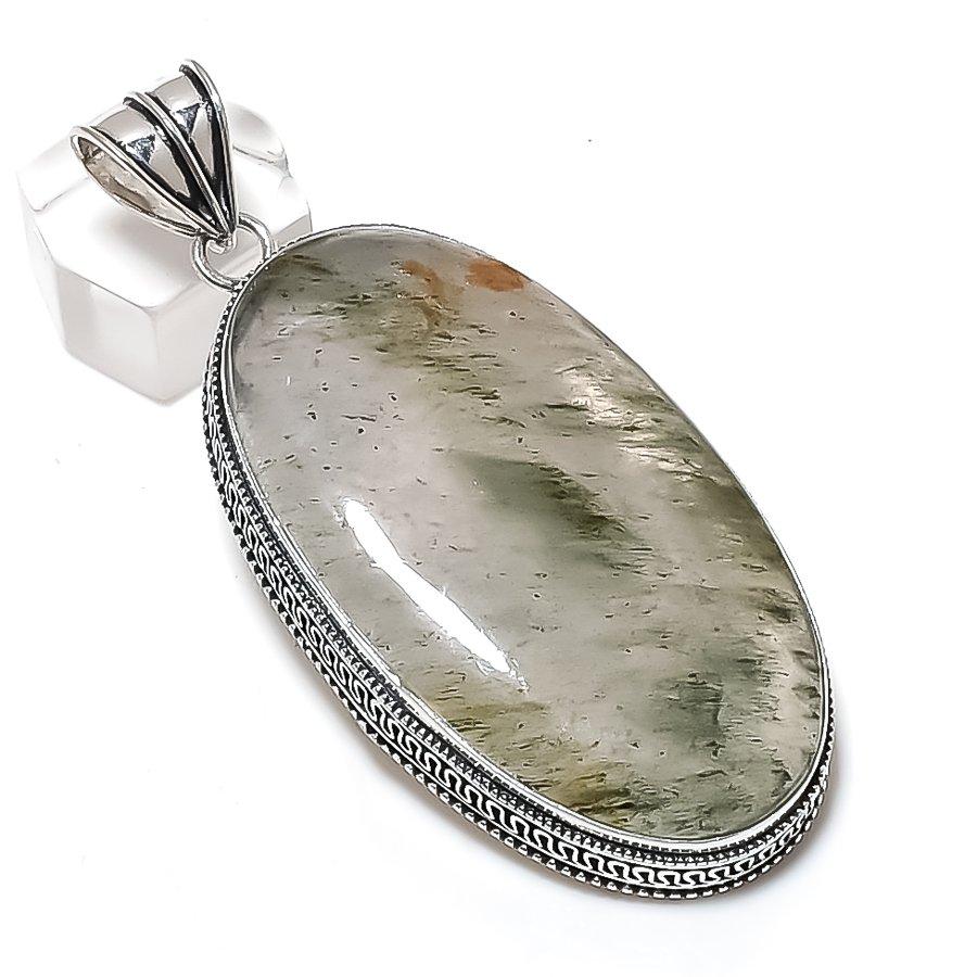 Натуральный Лодолитовый Кварц Драгоценный Камень 925 Стерлинговое Серебро Ювелирное Изделие Подвеска 2,96"
