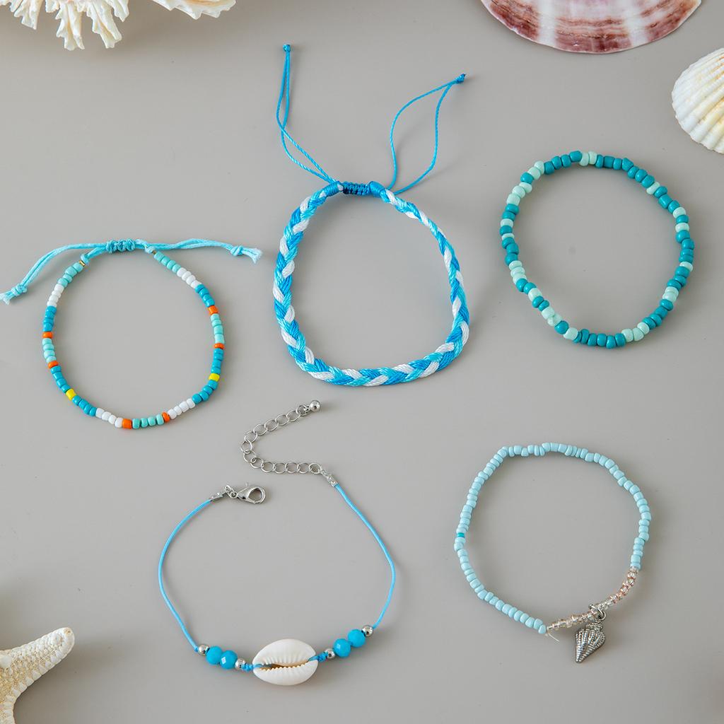Богемный набор браслетов из плетеной веревки с подвесками в виде ракушки, морской звезды, ананаса, бусинами из семян - Стиль голубого океана, летний, пляжный, для отпуска, подарок, набор, регулируемый