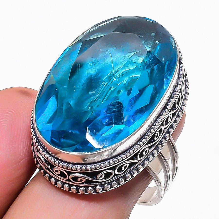 Натуральный швейцарский голубой топаз драгоценный камень 925 стерлинговое серебро ювелирное кольцо размер 9.5 P7p34