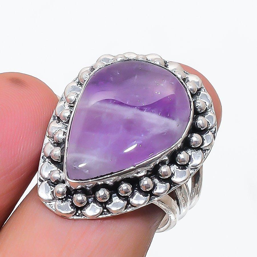 Натуральный аметист шалфеевого цвета, драгоценный камень, серебро 925 пробы, ювелирное кольцо, размер 8 t6t35