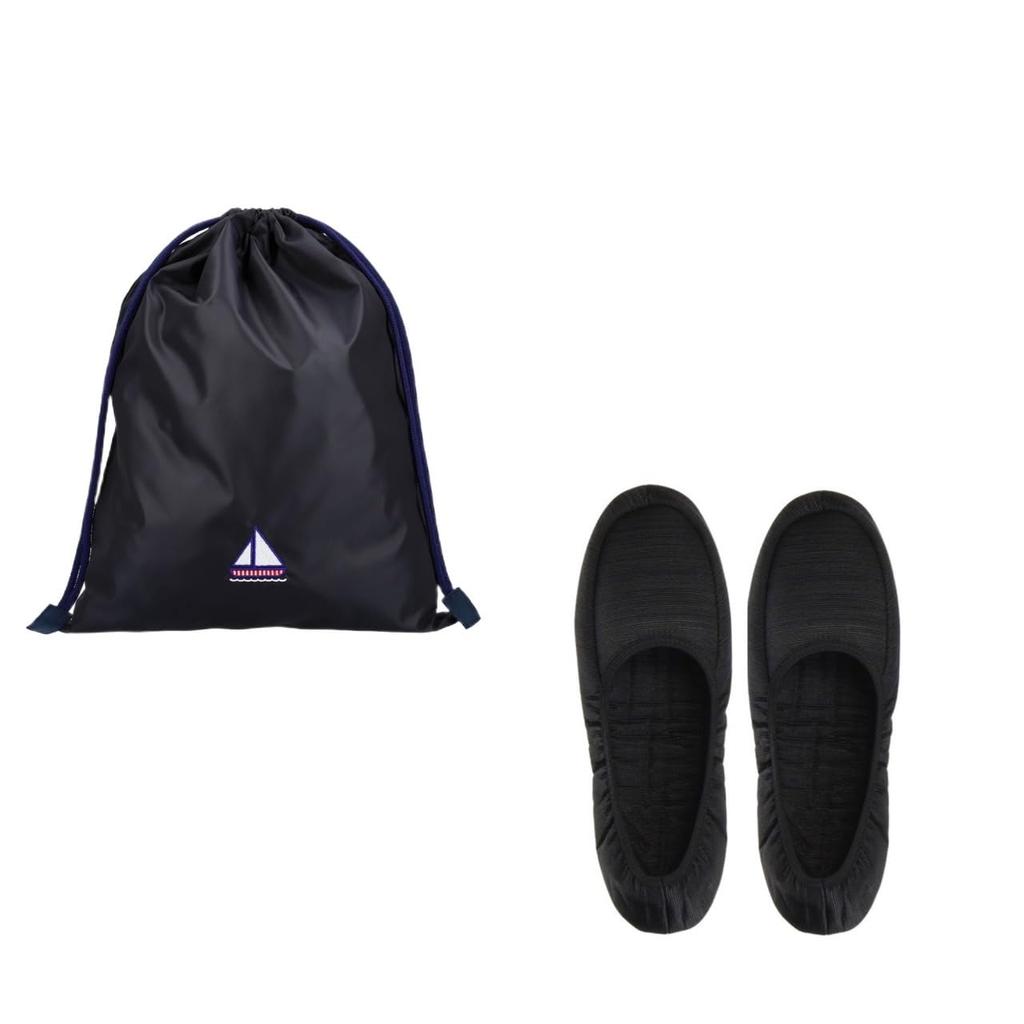 Angel Smile Royal School Гросгрейн Портативные тапочки Размер LL Вышивка с рисунком яхты Темно-синий набор мешочка на шнурке RSSL2023002 LL (Сплошной черный) & (большой)