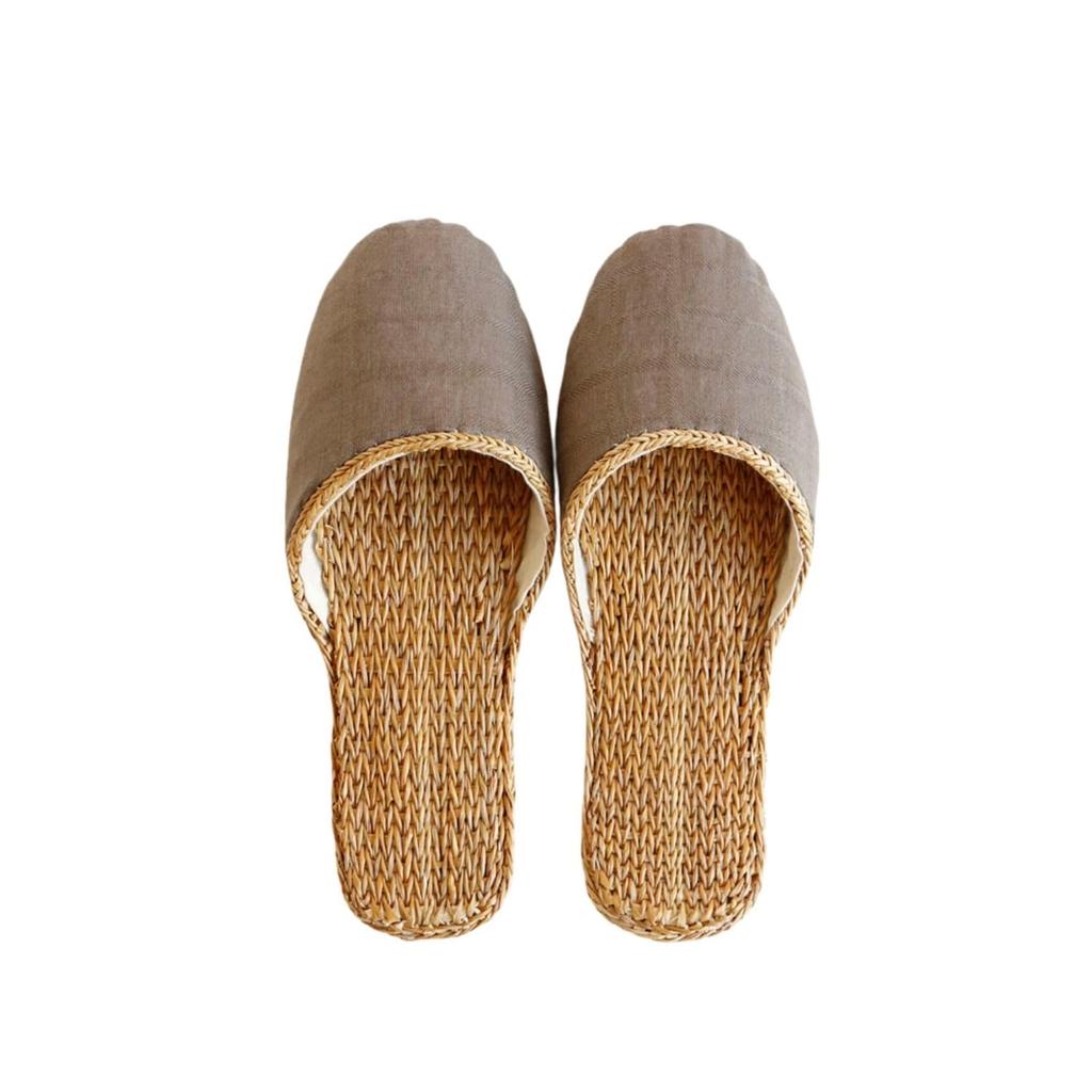Shisei Hanbai Клетчатые тапочки из пшеничной соломы для лета на босу ногу, один размер подходит всем 107865 Комфорт, серый, (Д26см),