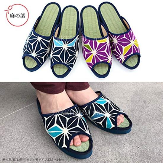 Takeharu Tatami Hemp Leaf Size 14 M Women's Slippers, Pattern/Navy,