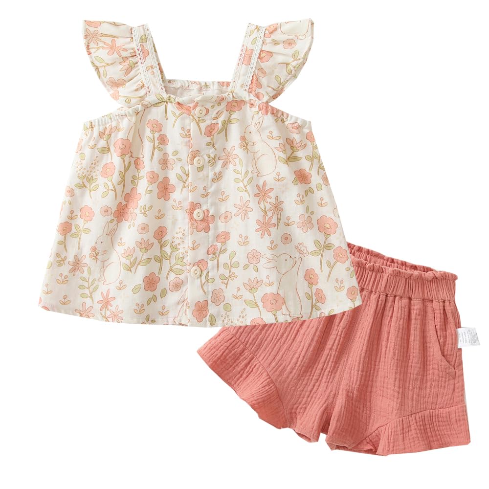 Reegoo Peter Детская футболка и штаны с оборкой Летний комплект из 2 предметов для девочек, Рукава, Одежда, 100% хлопок, Розовый, 2-3