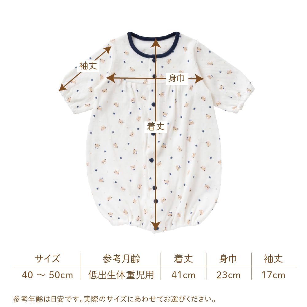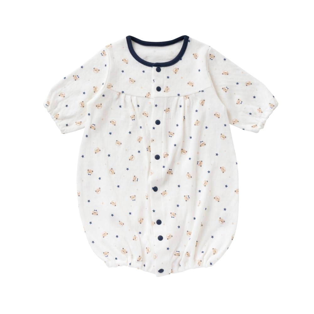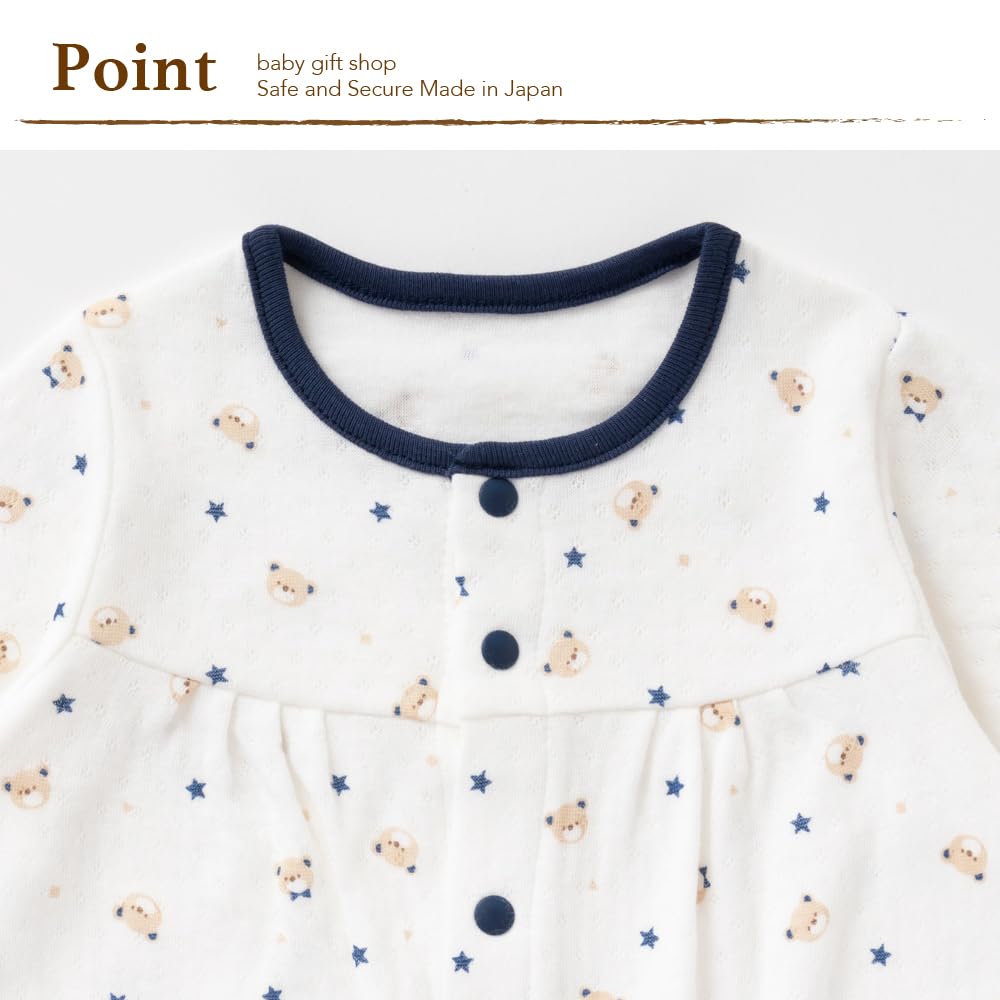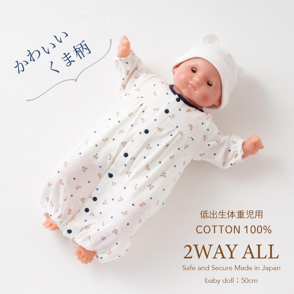 Крем де Коко Принт Медведя для Недоношенных Детей Вес при Рождении Новорожденный Сделано в Японии для и Двусторонний Все-в-Одном [Кнопки в Паху/Двусторонний] Ребенок, 100% Хлопок,