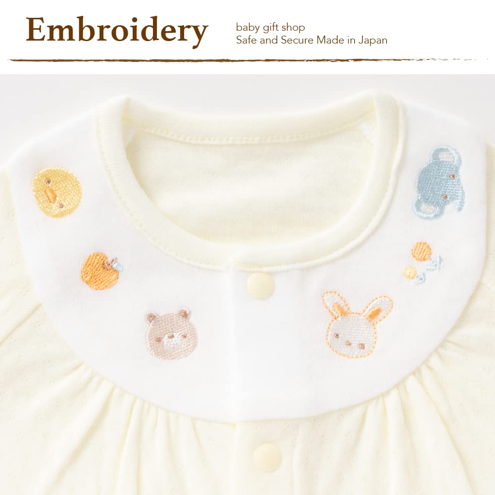 Крем де Коко Вышитый Животным для Недоношенных Детей Вес при Рождении Новорожденный Хлопок Сделано в Японии для и Двусторонний Все-в-Одном [Кнопки в Промежности/Двусторонний]
