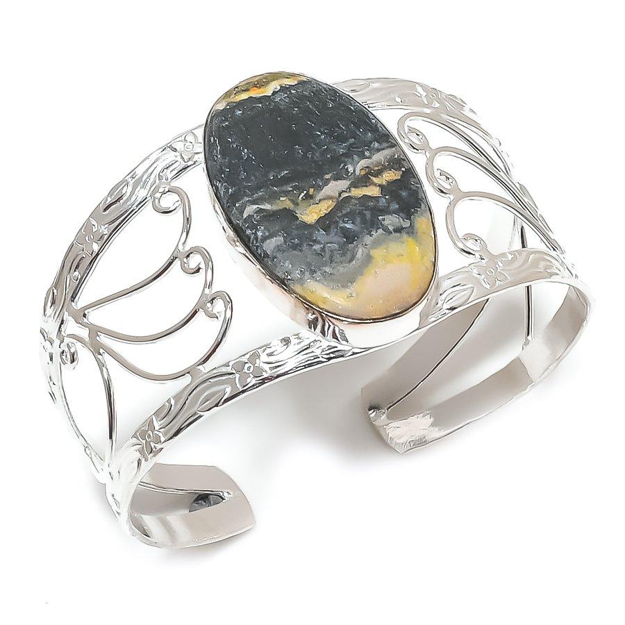 Натуральный камень Яшма Шмель Серебро 925 пробы Манжета-браслет Регулируемый s3w24 — купить товар онлайн с бесплатной доставкой по всему миру!