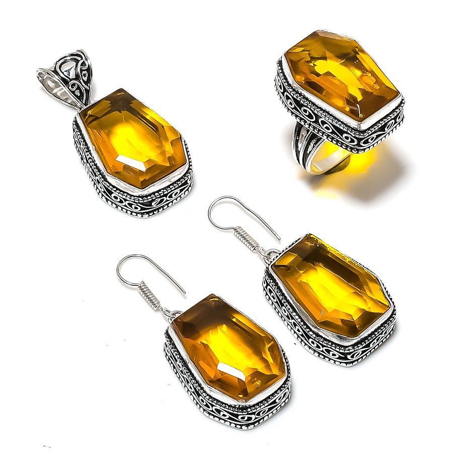 Натуральный Цитрин Драгоценный Камень Ручной Работы 925 Стерлинговое Серебро Набор Ювелирных Изделий j5o55