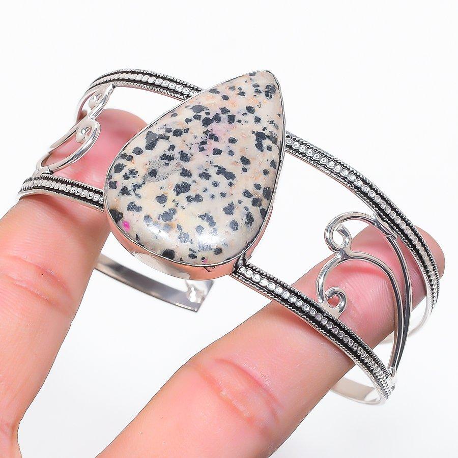 Натуральный камень Далматинская яшма Серебро 925 пробы Манжета Браслет Регулируемый G3H40