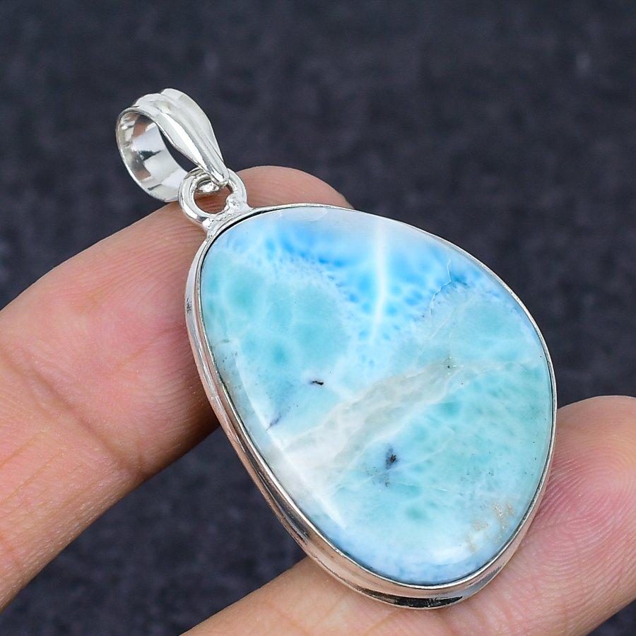 Подвеска из стерлингового серебра 925 пробы с драгоценным камнем Ларимар 2,01 дюйма