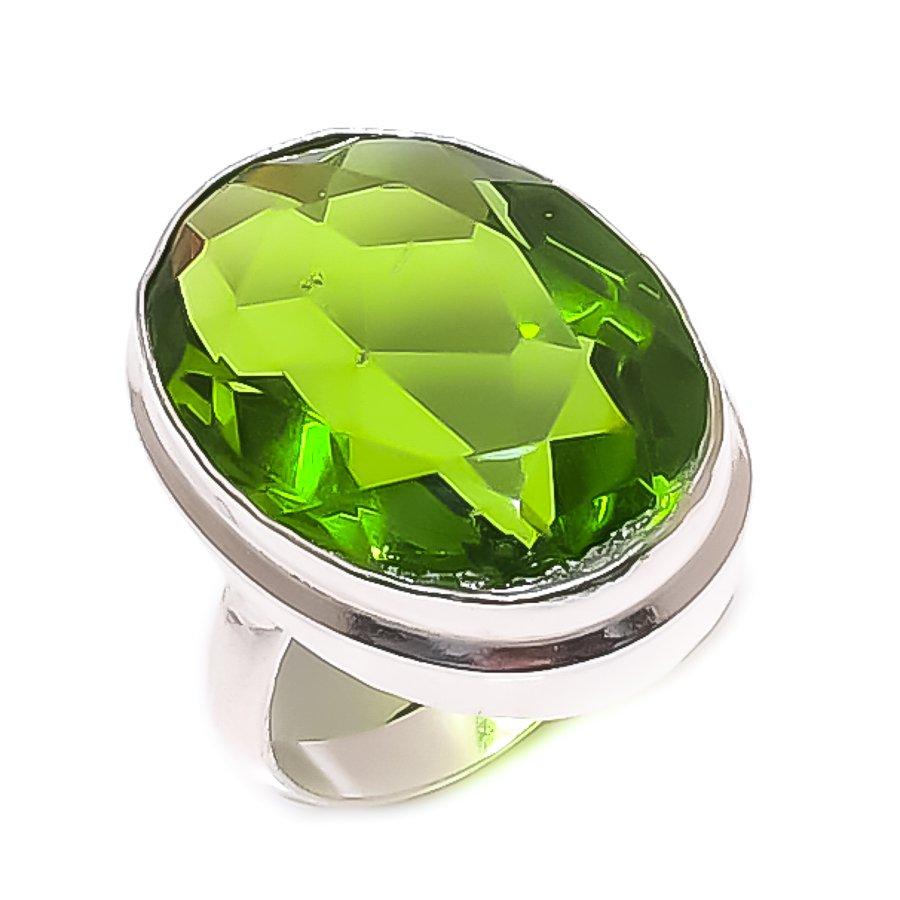 Перидот Драгоценный камень Ручной работы Ювелирное изделие из серебра 925 пробы Кольцо Размер 5 w7B30