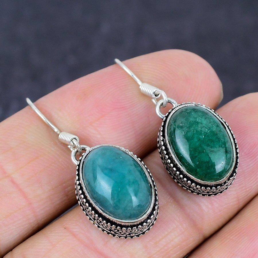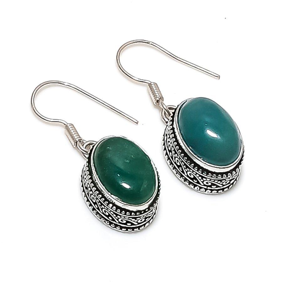Зеленый Апатит Драгоценный камень Ручной работы 925 Стерлинговое серебро Ювелирное изделие Серьга 1,38" f5i45
