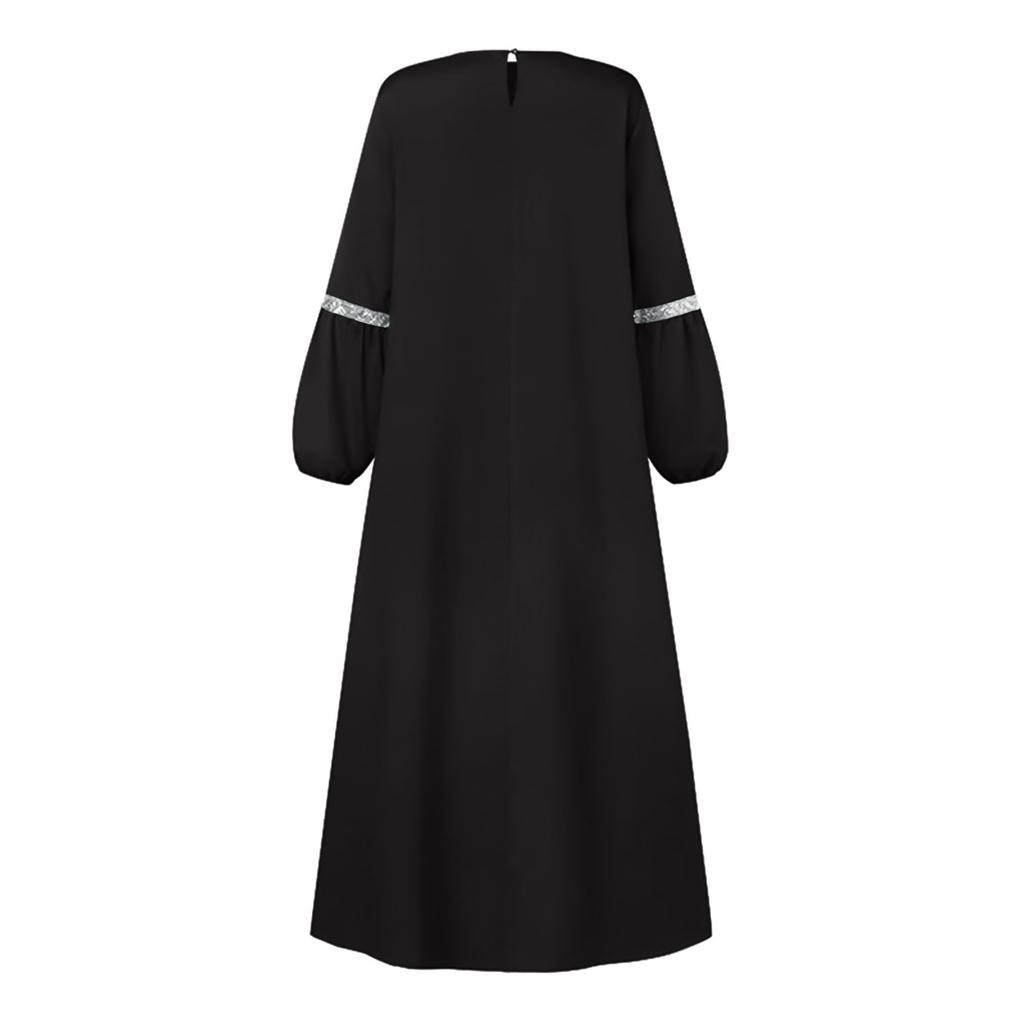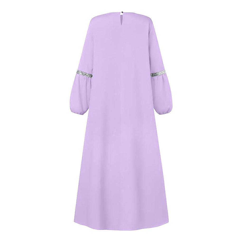 Женские мусульманские повседневные элегантные однотонные платья с круглым вырезом и длинным рукавом в складку