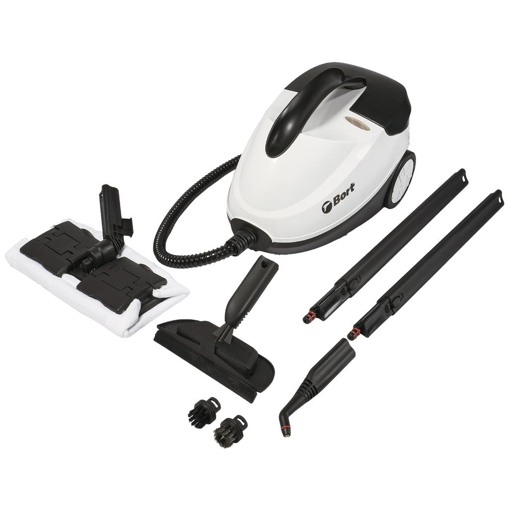 Пароочиститель Bort BDR-2300-R — это компактное, но мощное устройство, которое позволяет быстро и эффективно очистить любую поверхность, не боящуюся пара.. Большой набор специальных аксессуаров, входящих в комплект, сделает генеральную уборку легкой и приятной.. Bort BDR-2300-R прекрасно вымоет пол, плитку, почистит ковры, придаст зеркальный блеск стеклянным покрытиям, очистит ванну, раковину, газовую плиту и многое другое. А дополнительная насадка для одежды обеспечит бережный уход за вашим гардеробом.. Паровой очиститель легко справится даже с самыми сложными складками, не повреждая вещи - намного лучше обычных утюгов. Bort BDR-2300-R также подходит для деликатных тканей, так как обработка паром не повреждает их структуру и сохраняет цвет.. Кроме того, пароочиститель можно использовать для удаления старых обоев. Устройство хорошо зарекомендовало себя при чистке автомобиля. Объем бака составляет 1,5 литра, что достаточно для 30 минут непрерывной работы, чего вполне достаточно для наведения идеального порядка.. Если работа еще не закончена, просто добавьте воды в бак, когда устройство немного остынет.. Bort BDR-2300-R экологичен. Обеспечивает чистоту во всем доме без использования химикатов, что особенно важно, если есть дети или аллергики. Высокая температура пара, свыше 140 градусов, уничтожит патогены, поддерживая здоровую атмосферу в каждой комнате.. С пароочистителем воздух в доме всегда остается свежим: обработка паром обеспечивает оптимальную влажность, а также устраняет все неприятные запахи в помещении. Точечная насадка обеспечивает легкую очистку углов и других труднодоступных мест.. Насадка для мытья окон/дверей предназначена для тщательной очистки стеклянных поверхностей, окон и зеркал. (Используется с насадкой для одежды). Насадка для одежды позволит вам быстро освежить и разгладить одежду и другие текстильные изделия.. Насадка также подходит для мягкой мебели. (Использовать с махровым полотенцем). Маленькая круглая насадка-щетка с металлической щетиной используется для чистки грилей, решеток и каминов. (Используется с точечным соплом). Маленькая круглая насадка-щетка с полимерной щетиной используется для чистки плитки, швов плитки и сантехники. (Используется с точечным соплом). Ковровая насадка позволяет легко отпаривать любой ковер. (Использовался с махровой тканью и напольной насадкой). Напольная насадка используется для чистки и дезинфекции различных напольных покрытий, таких как плитка, ламинат, паркет, линолеум и т. д.. (Использовать с махровым полотенцем).