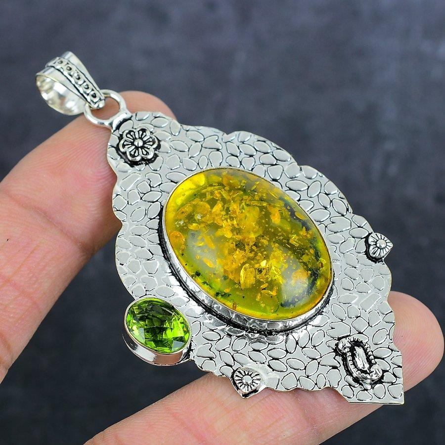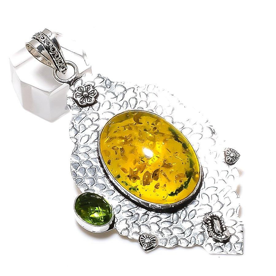 Подвеска из серебра 925 пробы с натуральным балтийским янтарем и перидотом 3,23 дюйма
