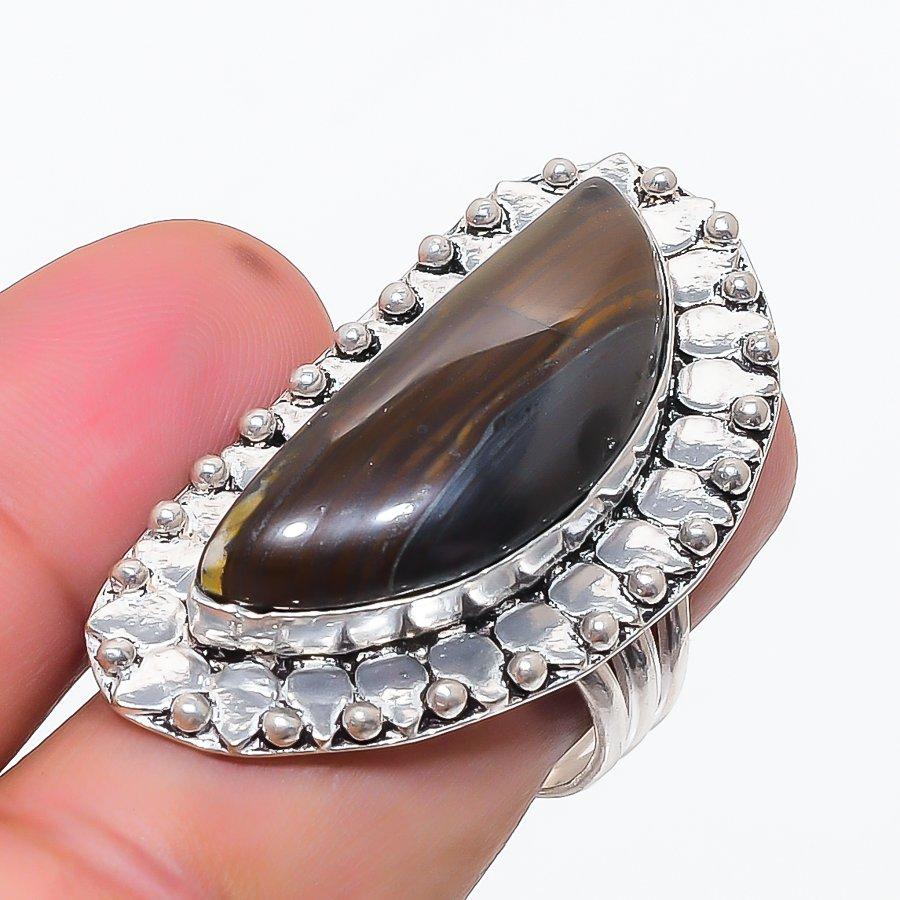 Натуральный камень Тигровый глаз 925 стерлинговое серебро Ювелирное кольцо Размер 8.5 V0t29