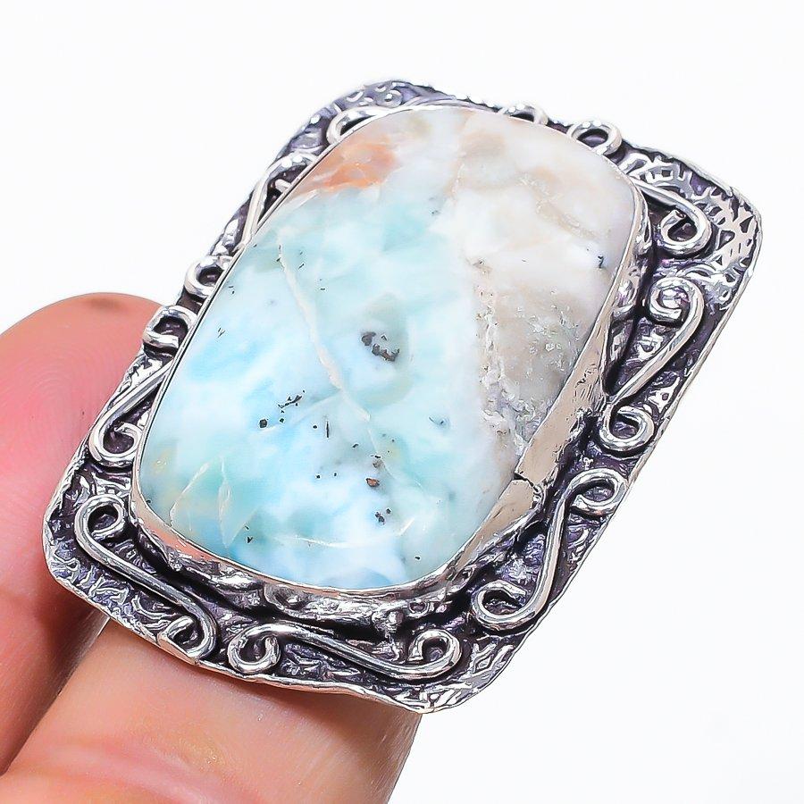 Натуральный Ларимар Драгоценный камень Ручная работа 925 Стерлинговое серебро Ювелирное кольцо Размер 10 f5M69