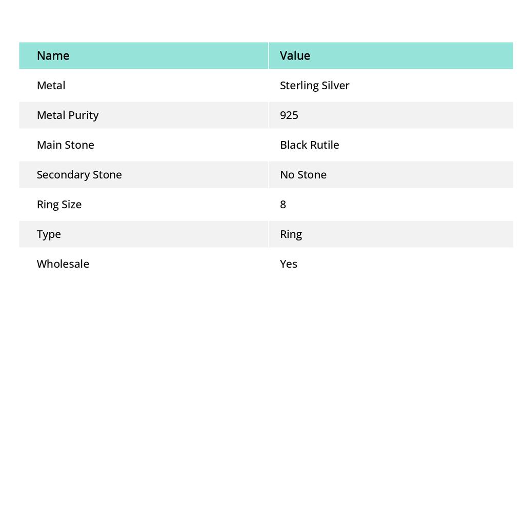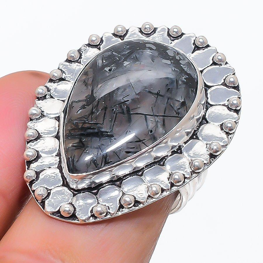 Натуральный Черный Рутил Драгоценный Камень 925 Стерлинговое Серебро Ювелирное Кольцо Размер 8 T4I71