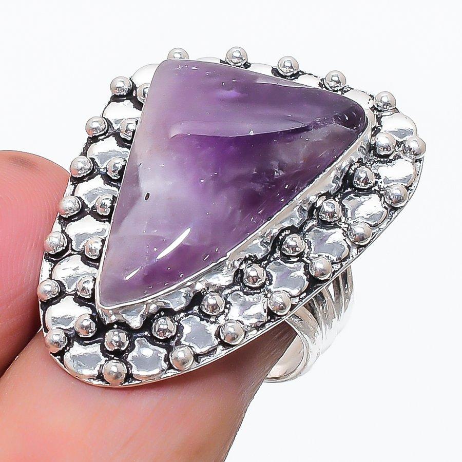 Натуральный камень Шевронный аметист Ювелирное изделие из стерлингового серебра 925 пробы Кольцо Размер 8 T1L76