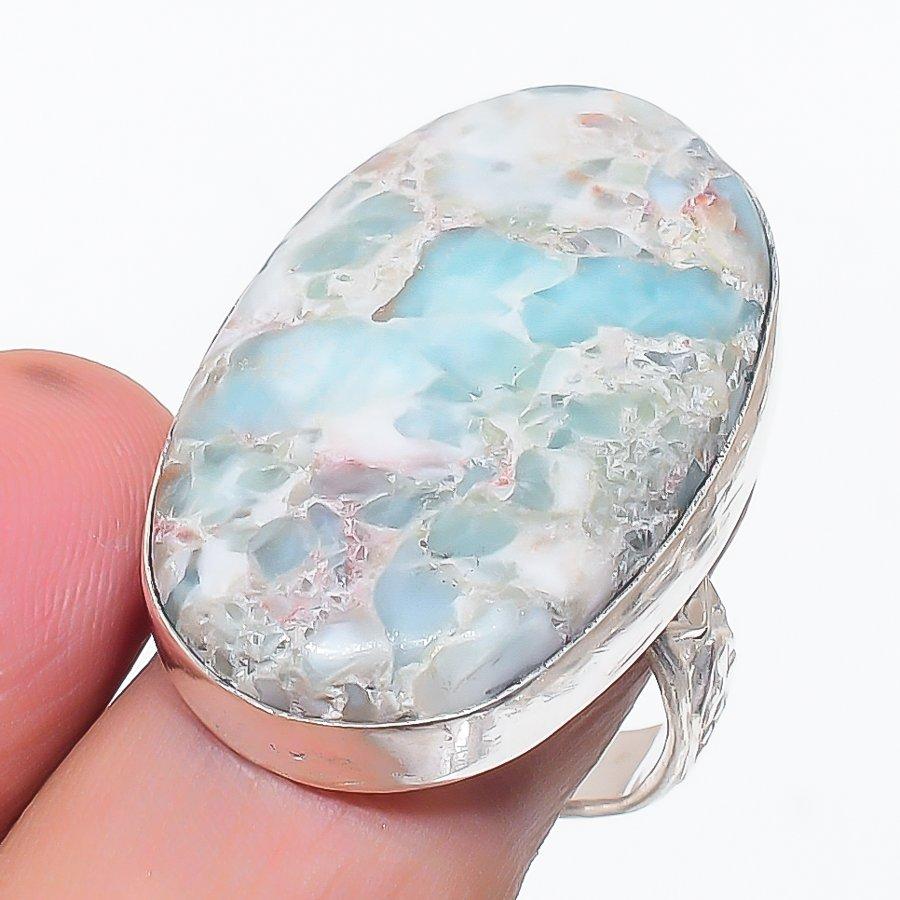 Натуральный Ларимар Драгоценный камень Ручная работа 925 Стерлинговое серебро Ювелирное кольцо Размер 9 T6t86