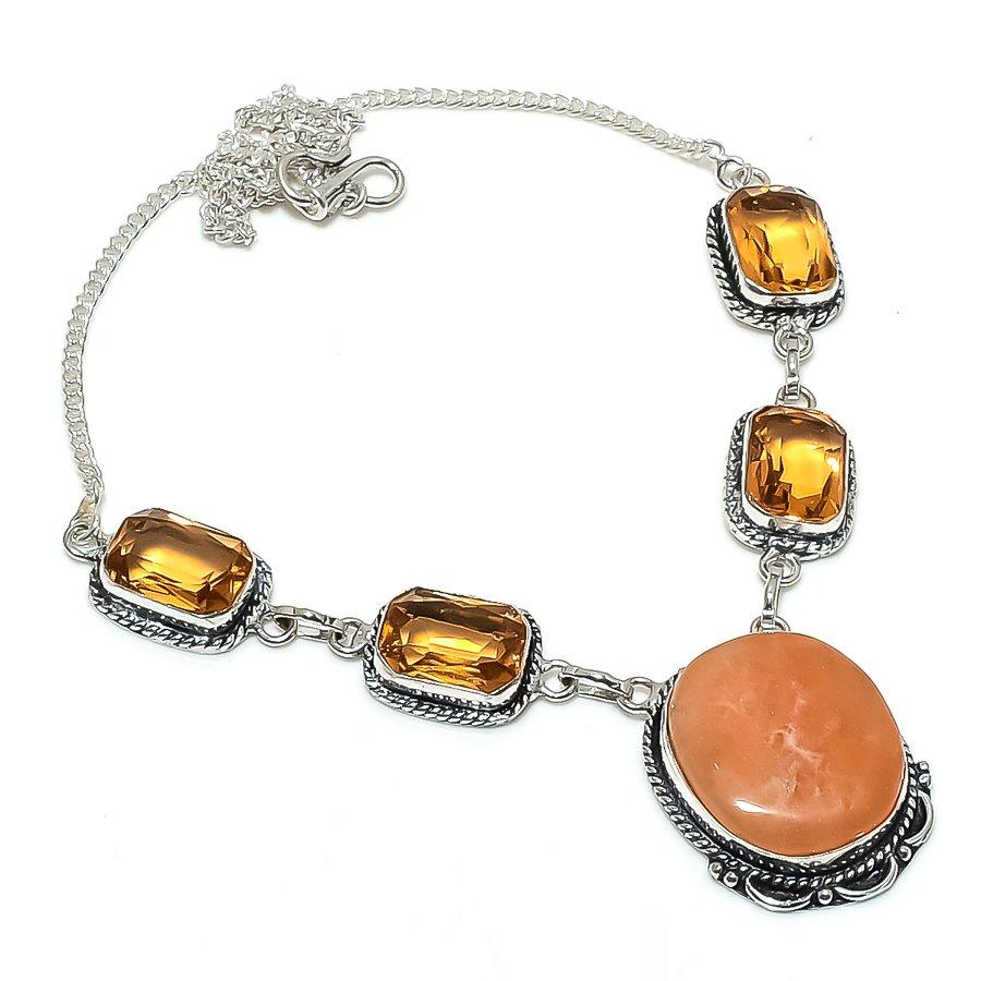 Натуральный оранжевый авантюрин, цитрин, ювелирное изделие из стерлингового серебра 925 пробы, колье 18" O0g84