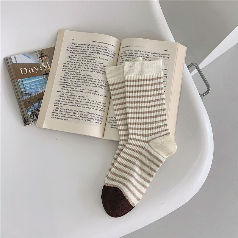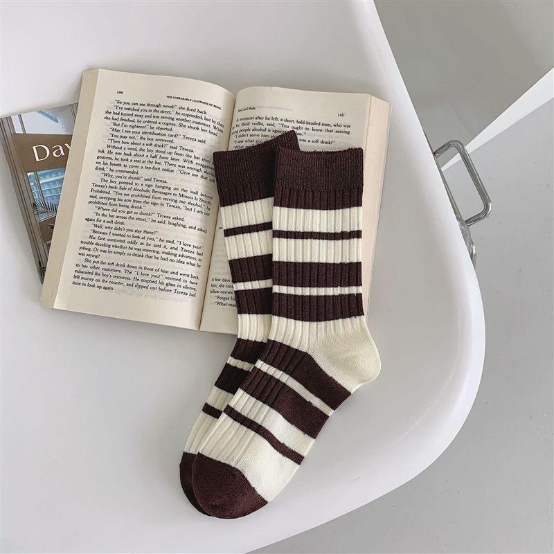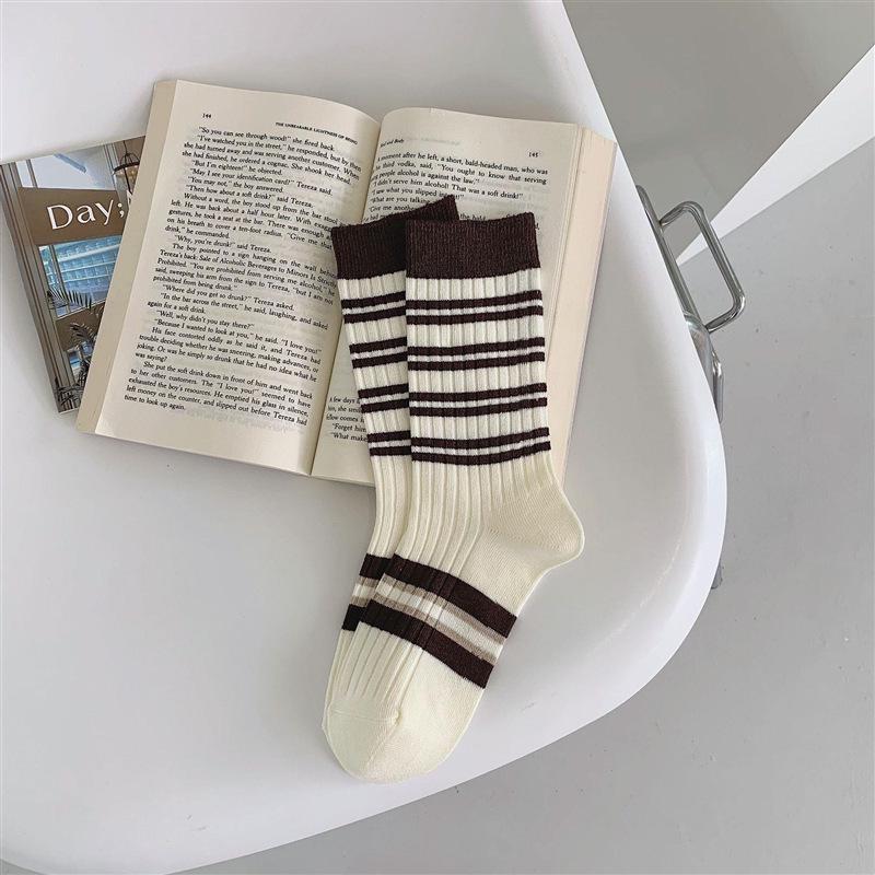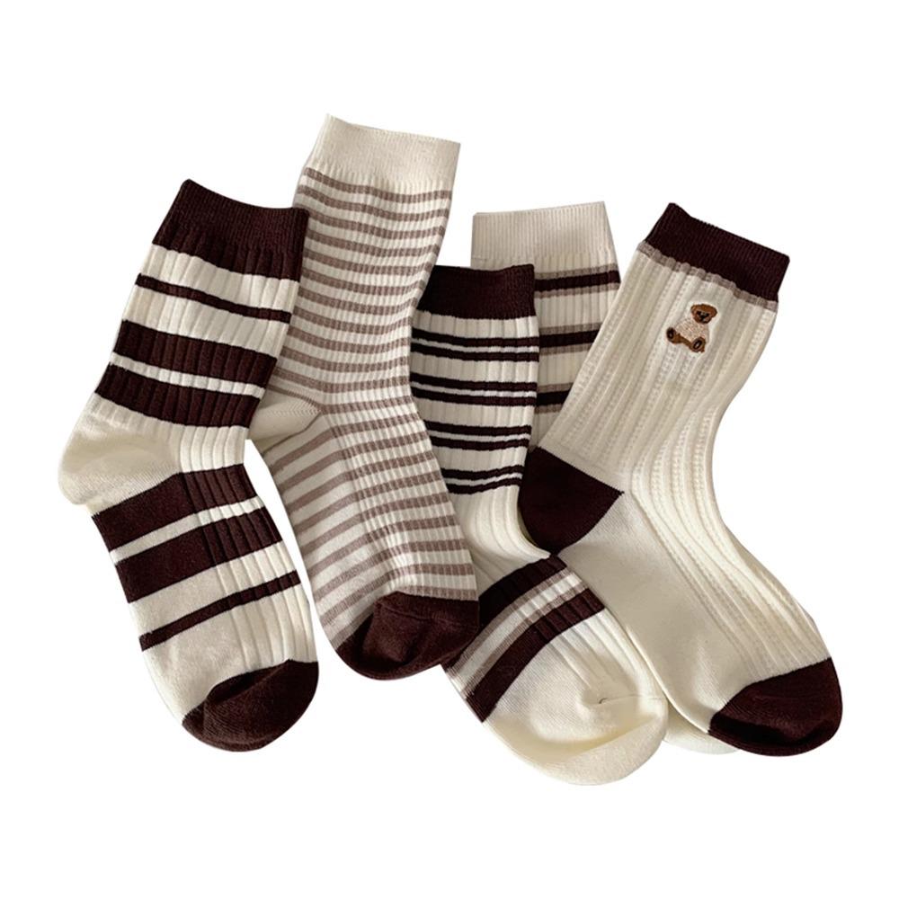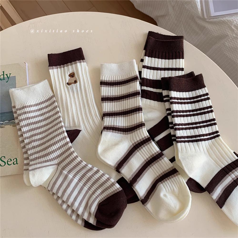Ретро полосатые носки до середины икры двойной вязки с милым дизайном медведя для женщин