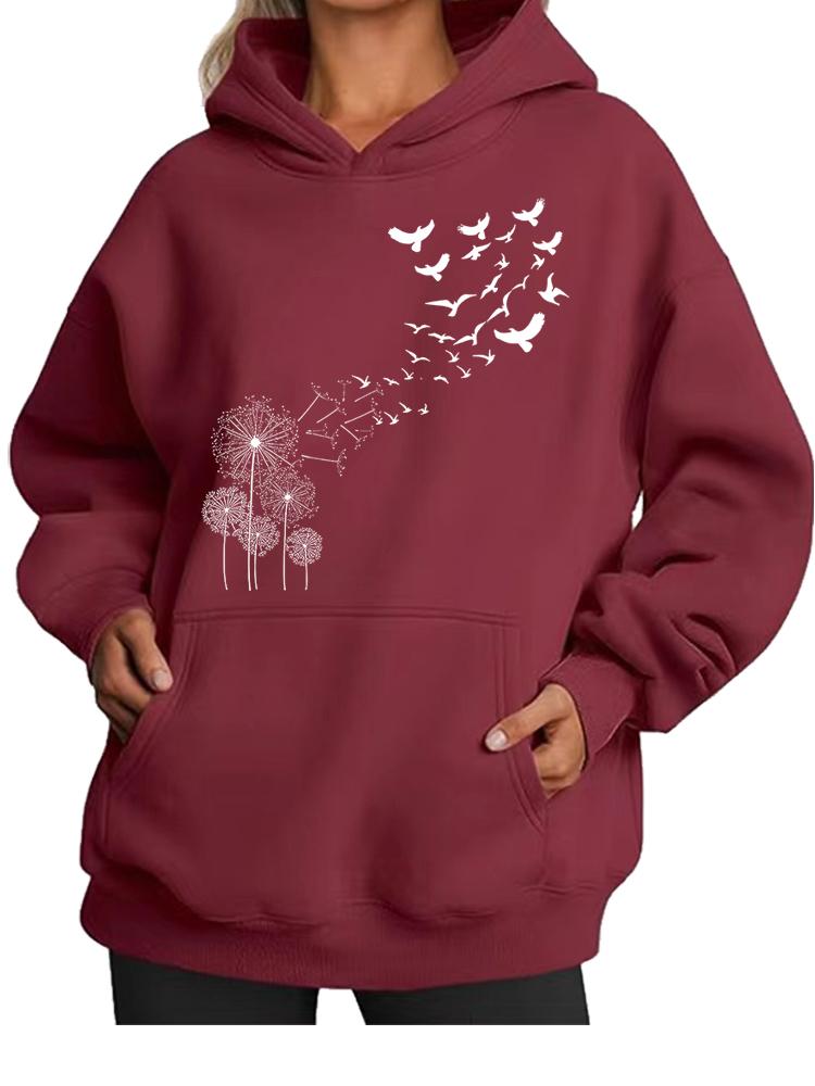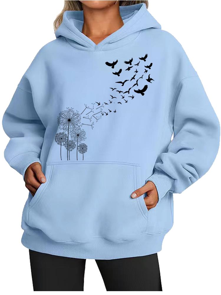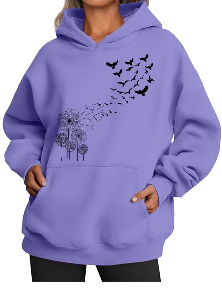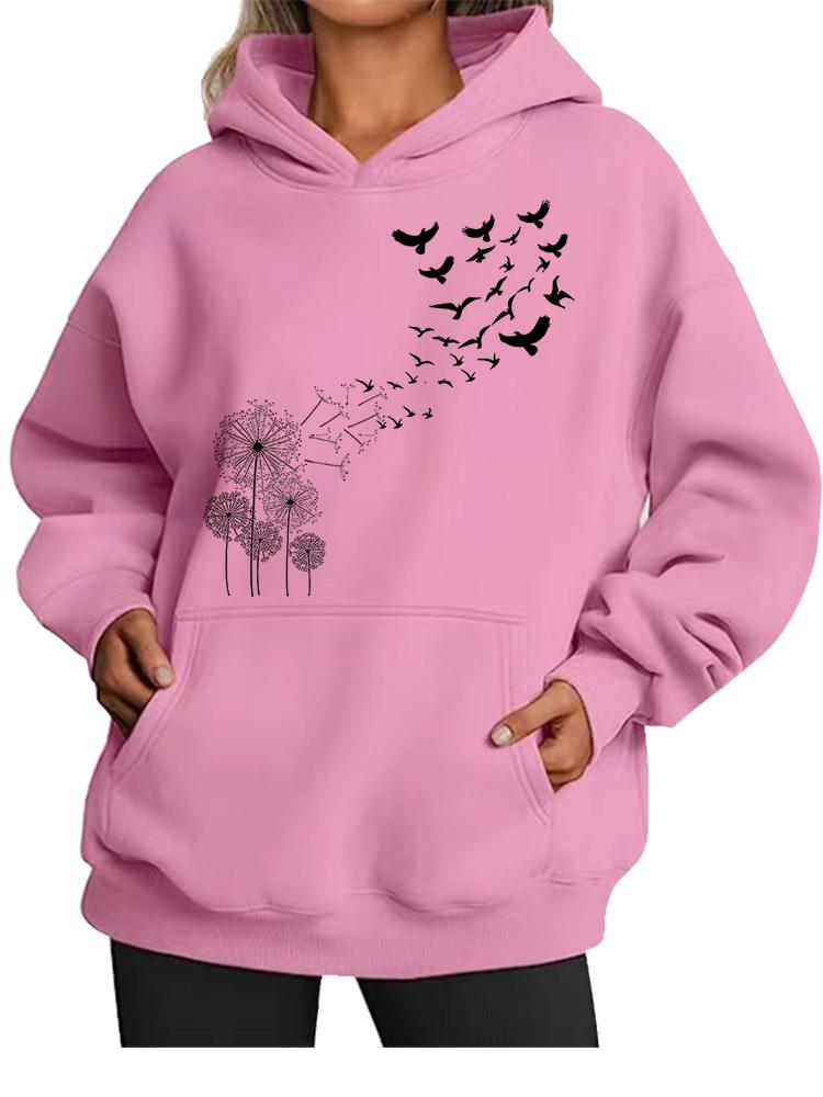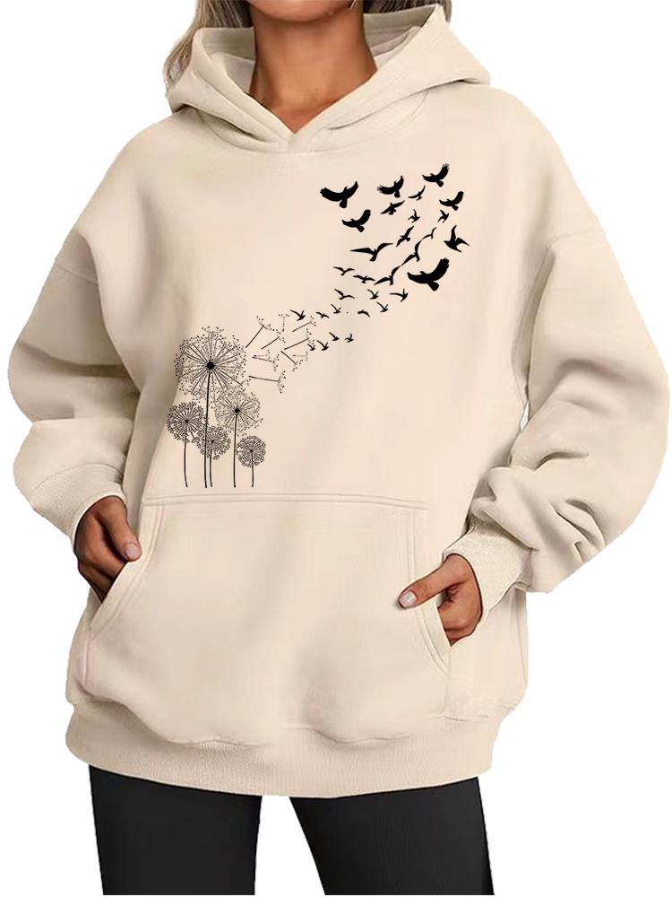 Fashion Fleece-Lined Hoodie Women's Fall/Winter Warm Printed Oversized Fleece-Lined Hoodie